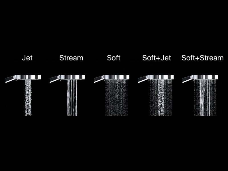 952.00 Universāls dizains un daudzas funkcijas. Dušas galviņas elegantajā korpusā slēpjas pieci ūdens padeves režīmi: Jet, Stream, Soft, Soft+Jet, Soft+Stream. Izbaudiet labvēlīgo ūdens strūklas iedarbību dažādās kombinācijās.