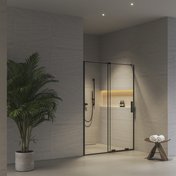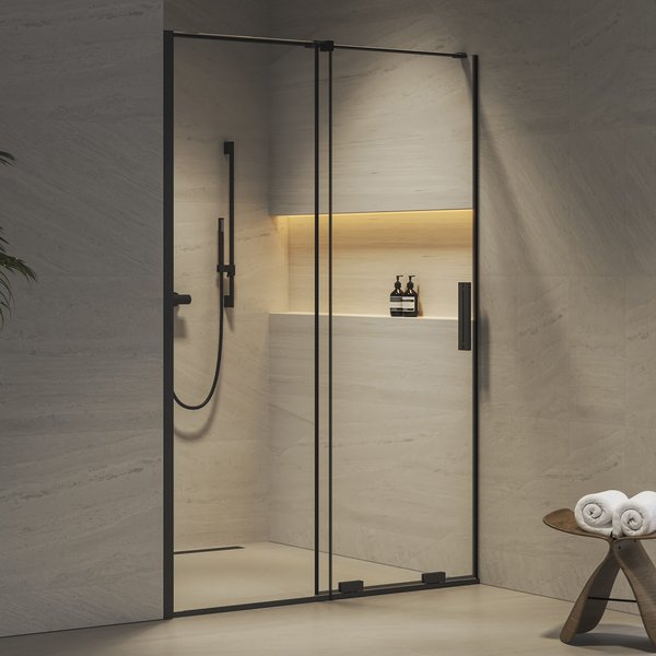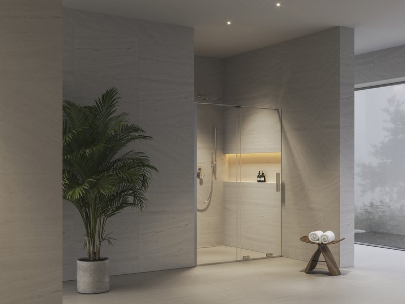 Ideāls risinājums dušas telpas izveidei nišā ar platumu 100–140 cm.