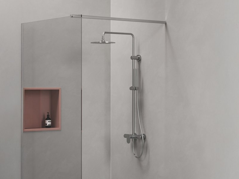 Augšējās dušas izvietojuma augstums regulējas arī pēc montāžas pie sienas. Augšējā duša griežas dažādos virzienos.