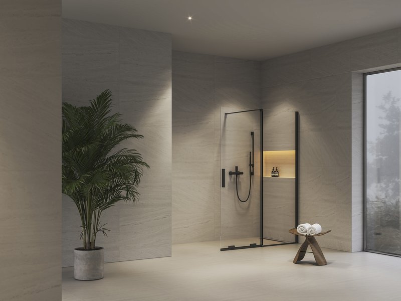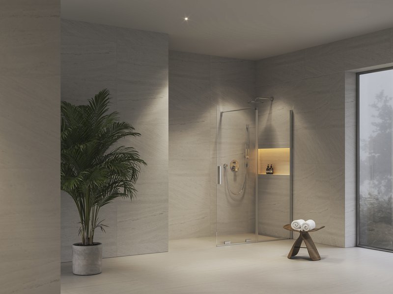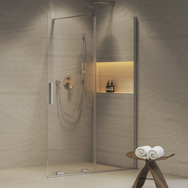 Roll sērijas dušas kabīņu klāstā atradīsiet arī iecienīto "walk-in" izpildījumu. Bīdāmā daļa lielāko tiesu var palikt iebīdīta, tādējādi tā neaizņem vietu un vannas istaba izskatās plašāka. Mazgāšanās laikā to vienkārši izbīdiet, iegūstot plašu un funkcionālu dušas sienu.