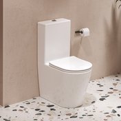 Elegant RimOff brīvi stāvošs tualetes pods ar sēdekli, SoftClose lēnas aizvēršanās sistēmu. Balts dizains.