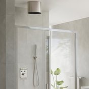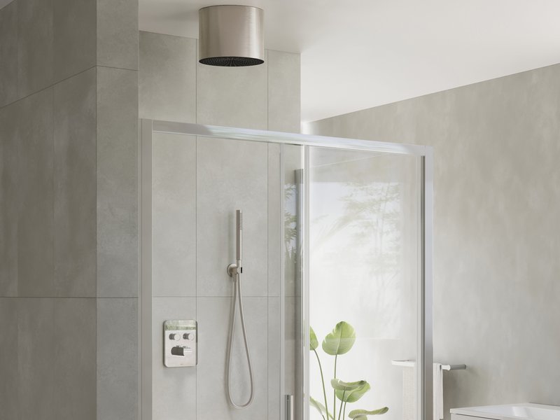 Cilindriskas formas griestu augšējā duša nodrošina bagātīgu ūdens strūklu ar tropiskā lietus efektu. Tā tiek montēta tieši pie griestiem, izmantojot komplektācijā iekļauto konsoli un šļūteni. Ārējai tīrīšanai iesakām lietot līdzekli Ravak Cleaner Chrome.