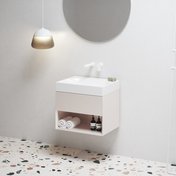 Izlietne no lieta marmora Lite uzstādīšanai pie sienas vai kopā ar sienas skapītī, bez pārplūdes. Balta apdare. Bez jaucējkrāna atveres - kombinēšanai ar zemapmetuma izlietnes jaucējkrānu.
