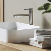 Īpaši augstais izlietnes jaucējkrāns ir lieliski piemērots izlietnēm uz galda virsmas. Nox nerūsējošā tērauda jaucējkrānu kolekcija ir veltījums mūsdienu arhitektūrai un precīzai meistarībai par pieņemamu cenu. Vadības elementu smalkā tekstūra piešķir jaucējkrāniem industriālu eleganci, savukārt matētā metāla efekts uz birstētām virsmām slāpē atspīdumus un rada siltuma, dabiskuma un greznības sajūtu. Mēs piegādājam krāsās: birstīts nerūsējošais tērauds, melns matēts, birstīts grafīts.