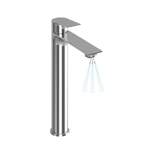 Jaucējkrāna iekšpusē ir viedais aerators ar EcoFlow funkciju. Plūsma ir ierobežota līdz 4,5 l minūtē un bagātināta ar gaisu. Jūs, iespējams, to pat nepamanīsiet, taču tas ietekmēs jūsu ūdens patēriņu, kas būs mazāks nekā ar parasto jaucējkrānu.