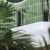 Pilnīgam vannas istabas dizainam, iesakām izvēlēties citus tādas pašas krāsas Plan jaucējkrānus.