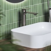 Īpaši augstais izlietnes jaucējkrāns ir lieliski piemērots izlietnēm uz galda virsmas. Plan kolekcija piedāvā elegantu minimālismu, kas iedvesmots no modernas ģeometrijas. Tievais cilindriskais korpuss un horizontālais, asi nogrieztais snīpis rada tīru un līdzsvarotu izskatu. Vienas sviras vadība seko jaucējkrāna sviras formai, radot perfekti simetrisku siluetu. Mēs piegādājam krāsās: spīdīgs hroms, matēti melna, pulēts grafīts.