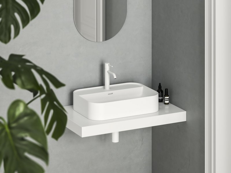 Glabājiet ziepes un citus piederumus pie jaucējkrāna, lai tie būtu pie rokas. Piedāvājam unikālu, brīvi stāvošu izlietni ar atveri jaucējkrāna uzstādīšanai tieši izlietnē. Visu pārējo var nolikt uz virsmas blakus izlietnei.