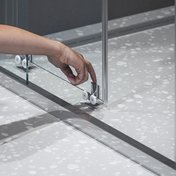 Viegli nospiežot uz mehānisma apakšējās daļas, slīdošās durvju vērtnes var iestatīt slīpi vai pilnībā izņemt un tādā veidā iztīrīt grūti aizsniedzamas vietas. Dušas kabīnes kopšanu Jums atvieglos universālais un delikātais tīrīšanas līdzeklis RAVAK Cleaner, kas paredzēts jebkuru vannas istabas virsmu tīrīšanai.