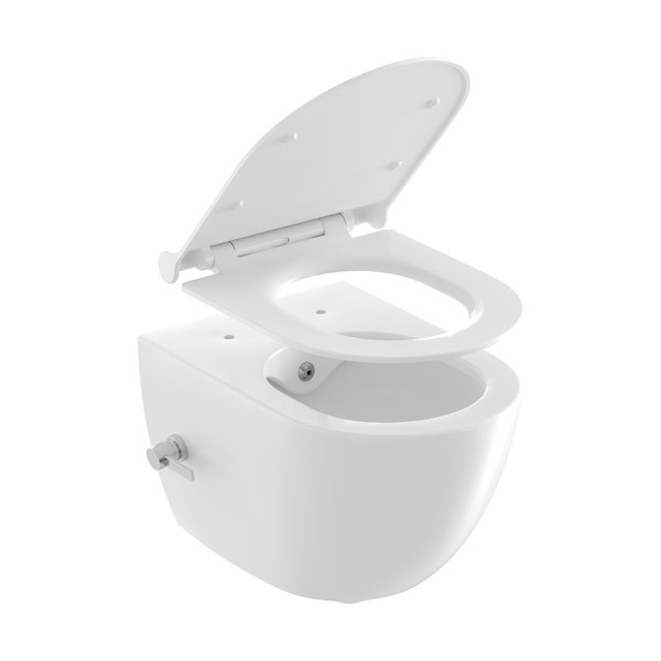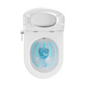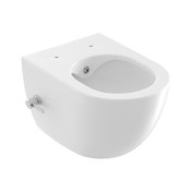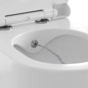 Podā iebūvētais bidē uzgalis ir regulējams, lai iestatītu optimālo ūdens strūklas leņķi. Ūdens plūsmas intensitāti un temperatūru regulē sviras jaucējkrāns tualetes poda labajā pusē. Nav nepieciešams elektriskais pieslēgums.